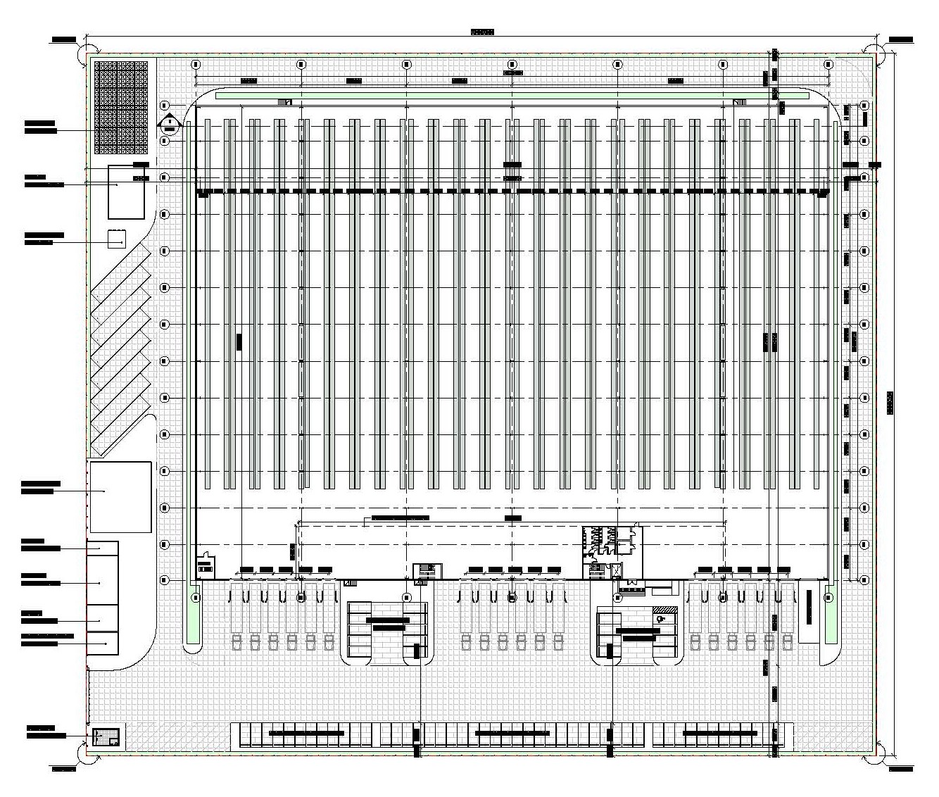 Class "A" Warehouse complex will consist of a warehouse area, an office part, and technical premises. The area of the warehouse will be 16,716 sq.m. The temperature range of the complex will vary within 22 - 24°C.